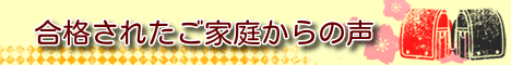 大変お世話になりました。子どもがよりも、親として子供にどう向かうべきかを教えていただいた一年半でした。塾長先生をはじめ、いろいろな先生方にも、私ども親子に親身になってご指導いただいたことをこれからの子育てにおいて心に留め、子ども共々成長していけるようがんばります。(昭和女子大附属)